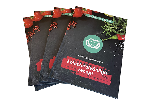 LowCholes receptbok med 30 dietistgranskade och kolesterolvänliga recept. Boken passar dig som vill äta mer hjärtvänligt i vardagen och kostar 299 kr inklusive frakt. För varje såld bok skänks 10 kronor till Riksförbundet HjärtLung.