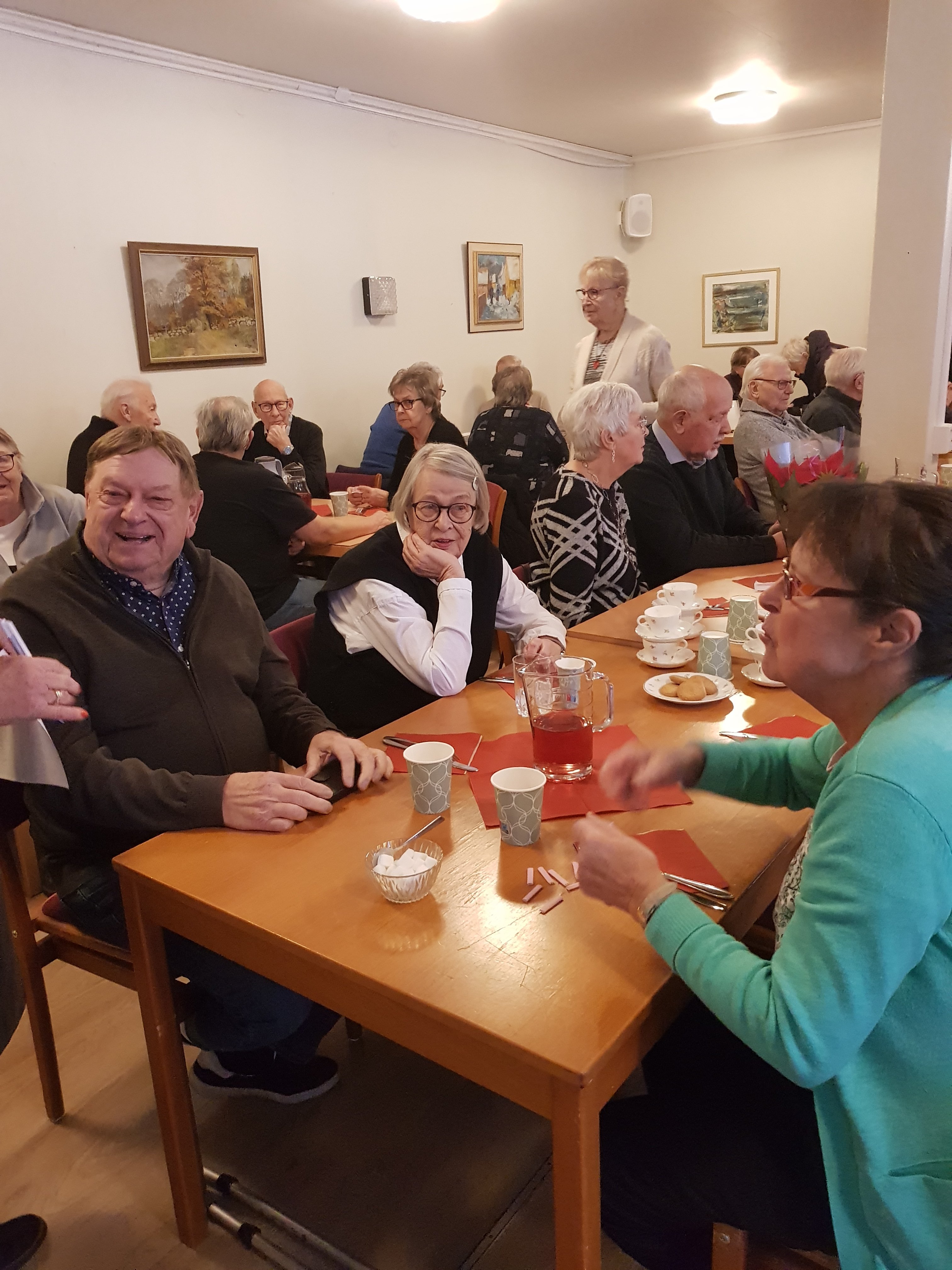 Ett 60 tal hade hörsammat inbjudan, bland de närvarande var det 9 jubilarer från 70 till 90 år som uppvaktades med sång och var och en fick en ros och en liten present.
