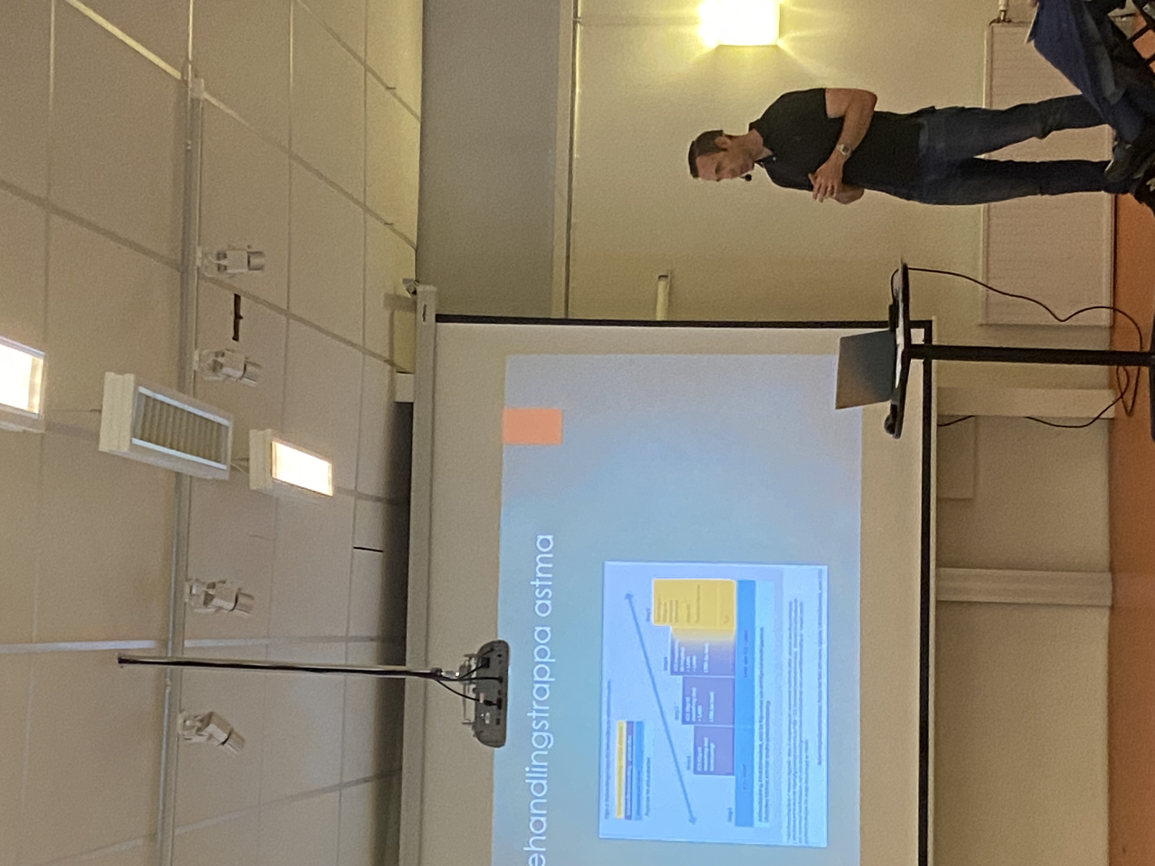 Martin Larsson, som är lung- och allergiläkare i Kungsbacka, börjar med att berätta om sjukdomen KOL som är ett gemensamt namn för lungsjukdomar. Astma och svåra allergier börjar med andningsbesvär, hosta, slembildning och pip i luftvägarna. I Sverige räknar man med att cirka fyrahundra tusen personer har KOL. Rökningen påverkar givetvis av hur allvarlig sjukdomen är. Astma är en kronisk sjukdom som kan debutera i alla åldrar och triggas ofta av yttre faktorer, infektioner, kyla mm. Vårdcentralerna kan ställa diagnos med hjälp av spirometri som är ett mått på patientens lungfunktion. Vid behov behandlas då patienten med mediciner. Det finns också andra behandlingsmetoder som KOL-skola, vaccinationer, träning mm.