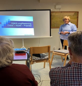En välbesökt och uppskattad eftermiddag med HLR-utbildning av Kerstin Norén från Riksförbundet Hjärtlung i Ljungby. Den som ville fick prova på med hjärtlungräddning. Kerstin visade även hur en hjärtstartare fungerar.
