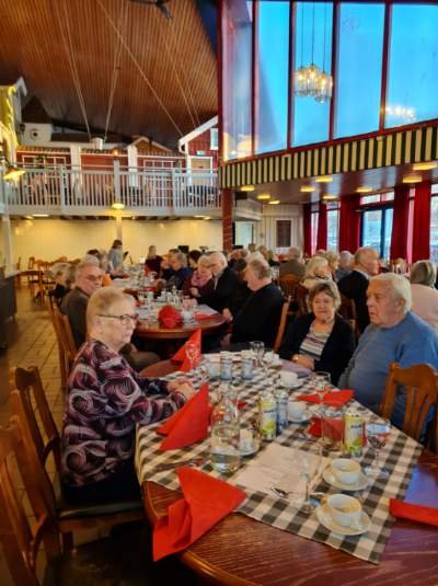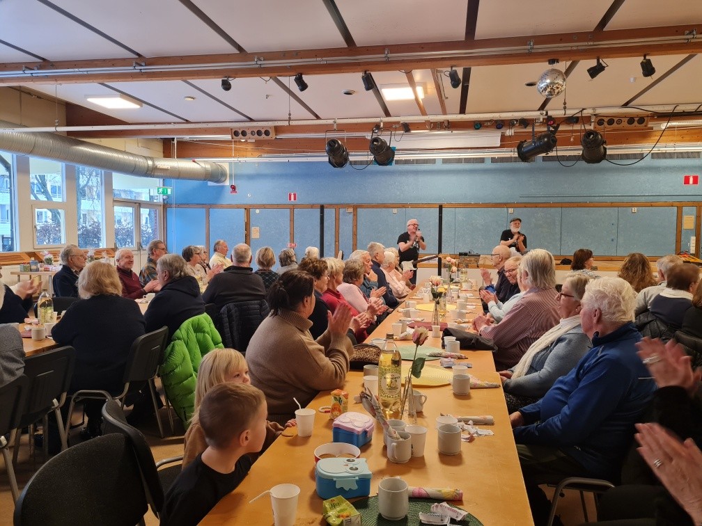 Fullt hus Trädet -Leffe o Bosse, underhållning med full fart, smörgåstårta o bubbel, kaffe o kaka. Var väldigt uppskattat.