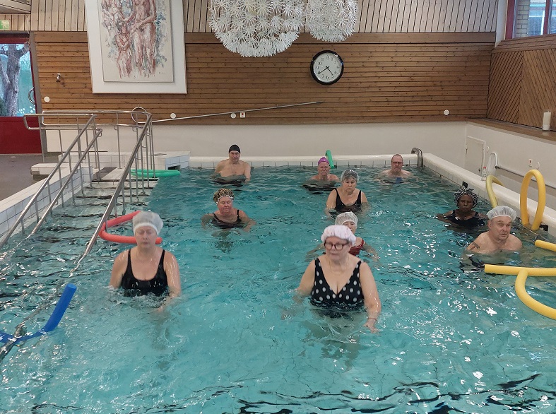 Våra två grupper i vattengym. Nu kör vi...
