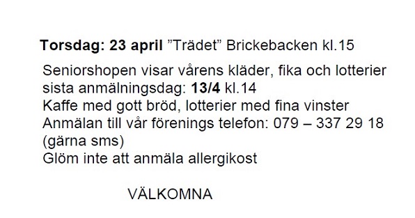 Anmälan: datum för varje träff nedan, 079- 337 29 18 -gärna sms