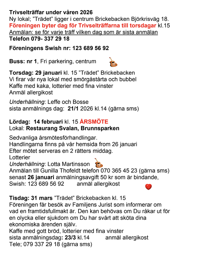 Trivselträffar under våren 2026