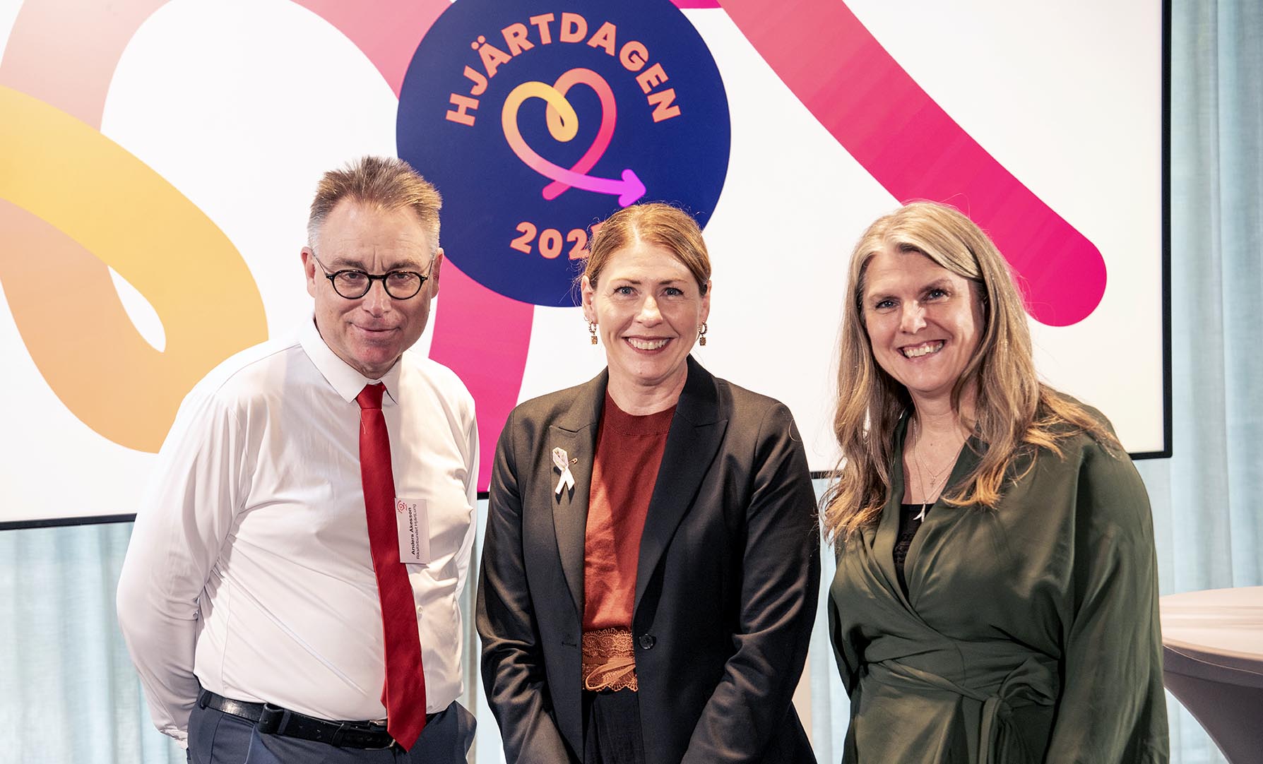 Riksförbundet HjärtLungs ordförande Anders Åkesson, sjukvårdsminister Elisabet Lann (KD) och Riksförbundet HjärtLungs generalsekreterare Ulrica Sundholm. Foto: Stefan Bladh/Riksförbundet HjärtLung